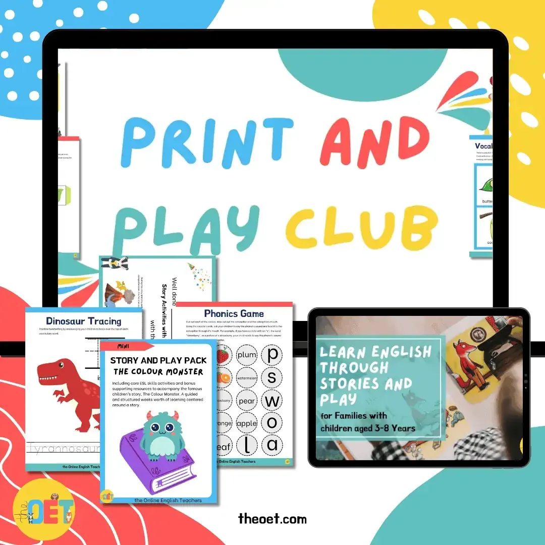 Your purchase is complete. You now have access to the Print and Play Membership. Get ready to enjoy learning English at home with your children!